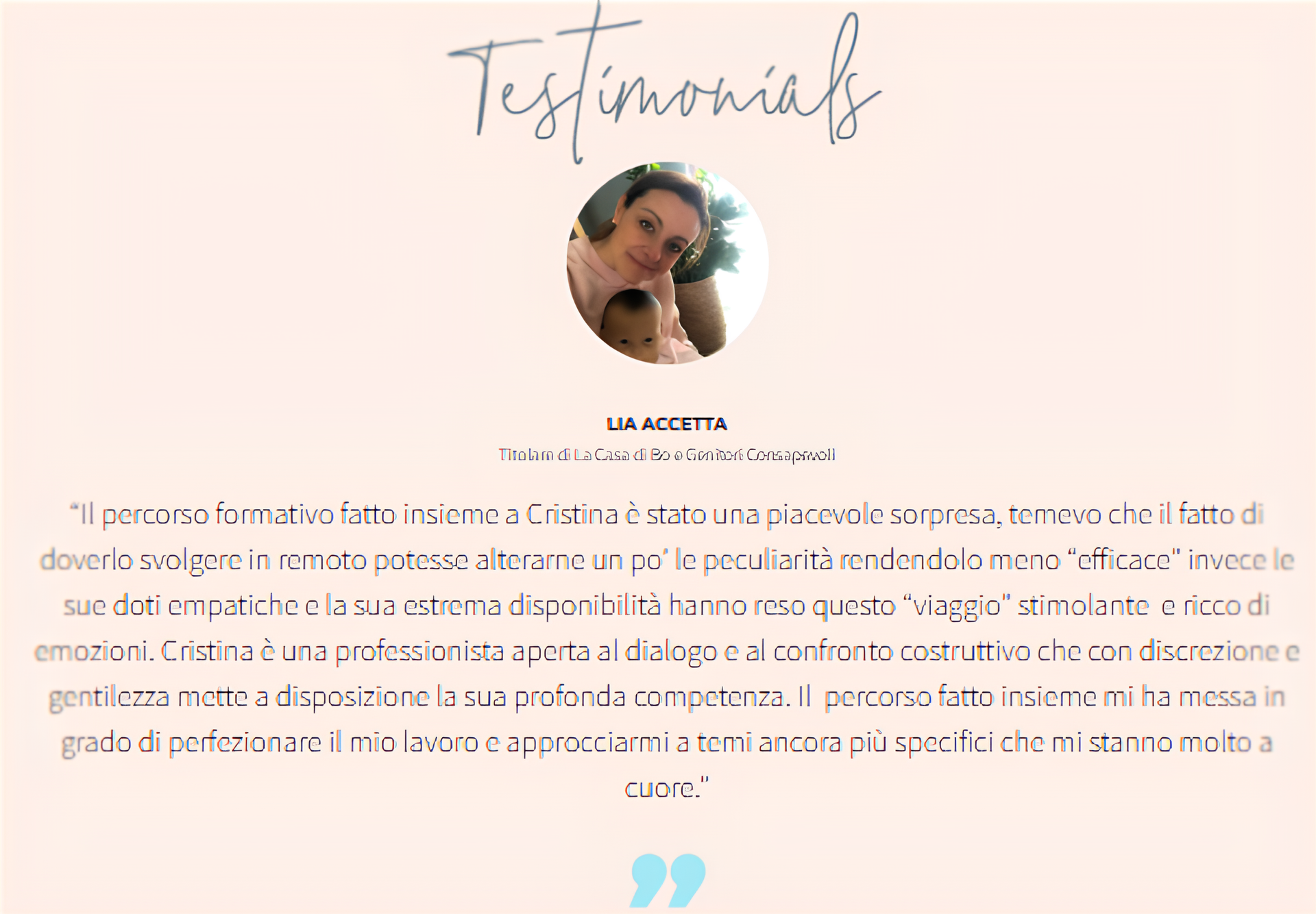 Ciò che rende davvero UNICO l'approccio di Cristina è la capacità di tradurre queste conoscenze tecniche in strumenti accessibili e pratici per tutti i genitori.